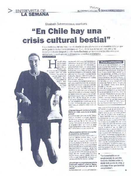 "En Chile hay una crisis cultural bestial" [artículo] María José Cabezas.