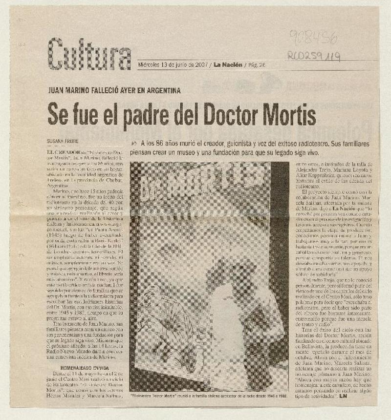 Se fue el padre del Doctor Mortis [artículo]Susana Freire.