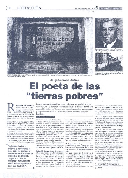 Jorge González Bastías. El poeta de las "tierras pobres" [artículo] Alejandro Morales Yamal.