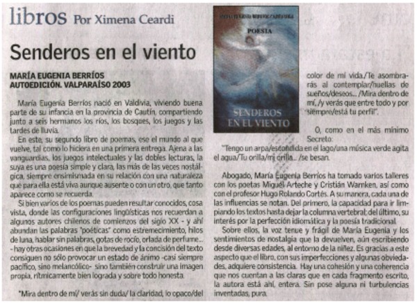 Autoras chilenas - Berríos, María Eugenia - Senderos en el viento
