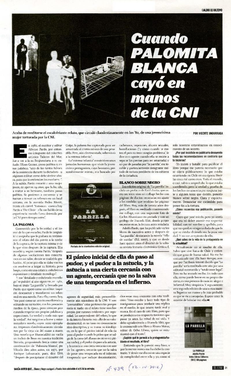 Cuando Palomita Blanca cayó en manos de la CNI [artículo] Vicente Undurraga.