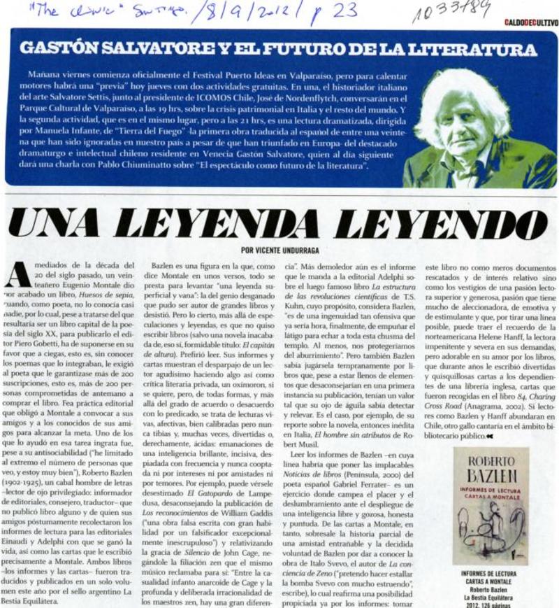 Una leyenda leyendo [artículo]Vicente Undurraga