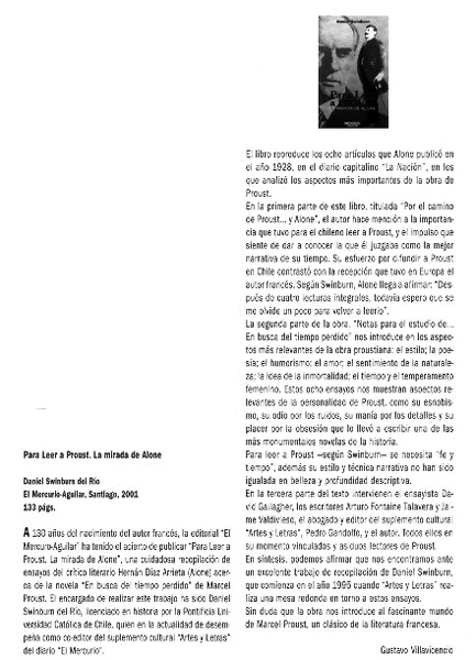 Para leer a Proust. La mirada de Alone [artículo] Gustavo Villavicencio.