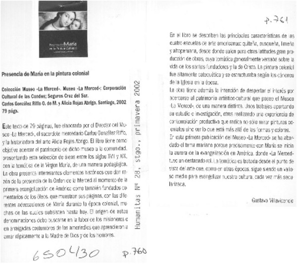 Autores chilenos - Rojas Abrigo, Alicia - González Riffo, Carlos - Presencia de María en la pintura colonial