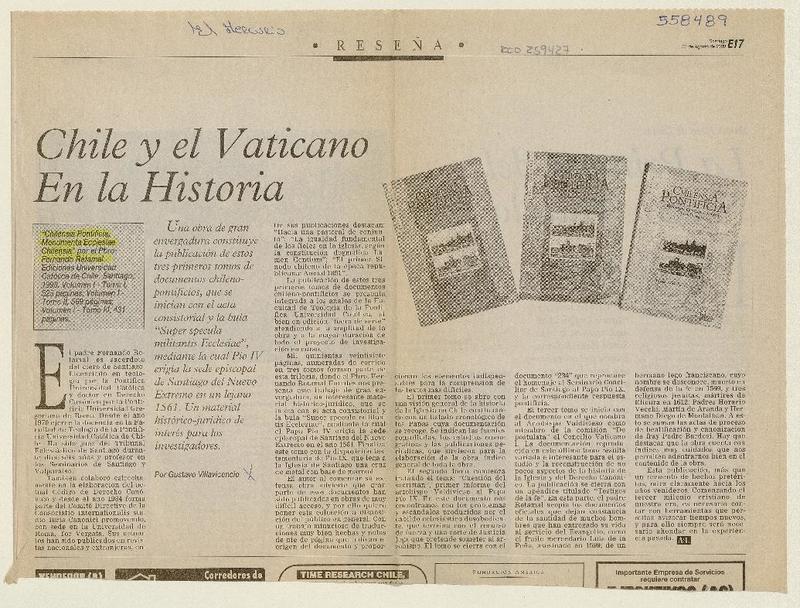 Chile y el vaticano en la Historia [artículo] Gustavo Villavicencio
