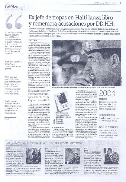 Ex jefe de tropas en Haití lanza libro y rememora acusaciones por DD.HH. [artículo] Guillermo Muñoz.