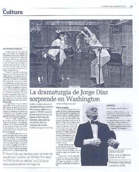 La dramaturgia de Jorge Díaz sorprende en Washington [artículo] Elisa Montesinos.