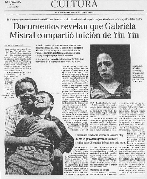 Documentos revelan que Gabriela Mistral compartió tuición de Yin Yin [artículo] Elisa Montesinos.