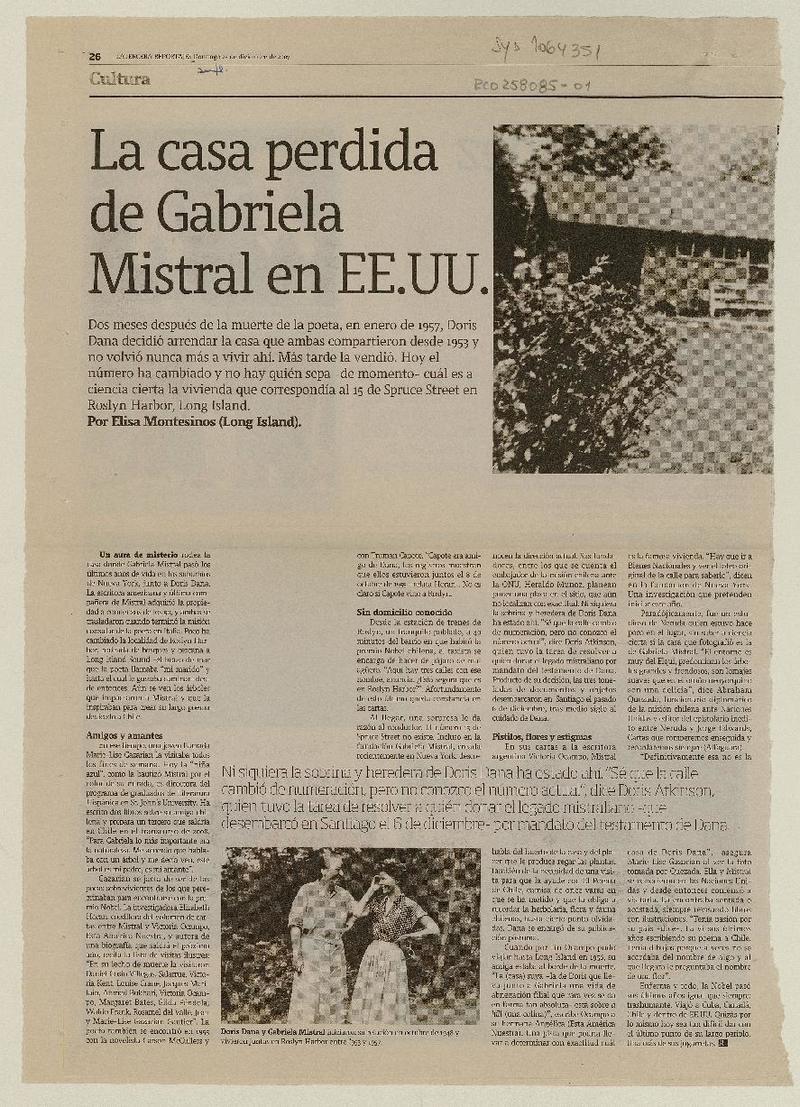 La casa perdida de Gabriela Mistral en EE.UU. [artículo] Elisa Montesinos.