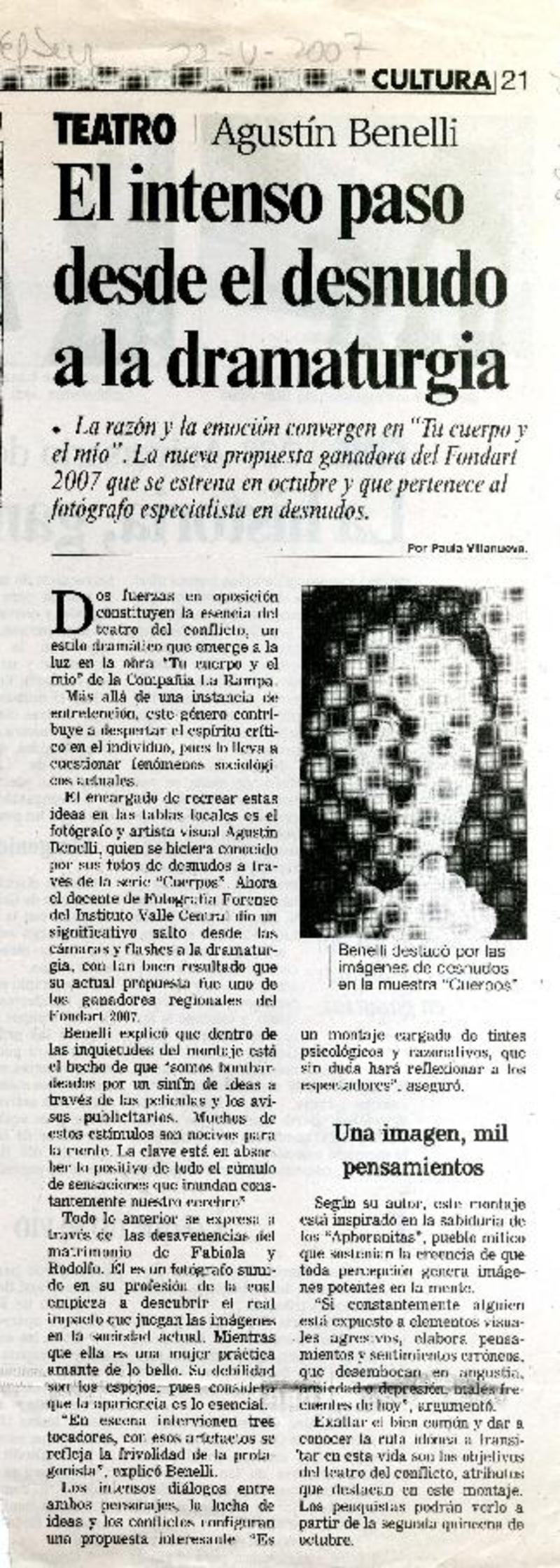 El intenso paso desde el desnudo a la dramaturgia [artículo] Paula Villanueva.