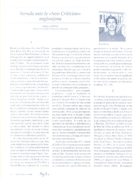 El Mar y la ceniza. Nuevas aproximaciones a la poesía de Pablo Neruda [artículo] Greg Dawes