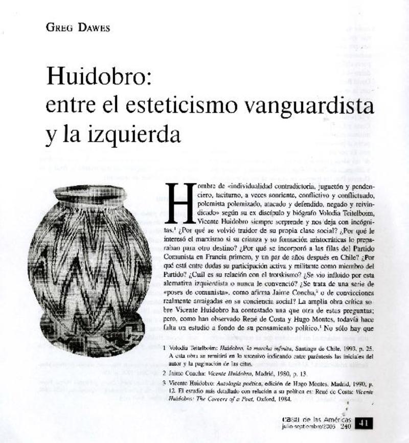 Huidobro: entre el esteticismo vanguardista y la izquierda [artículo] Greg Dawes.