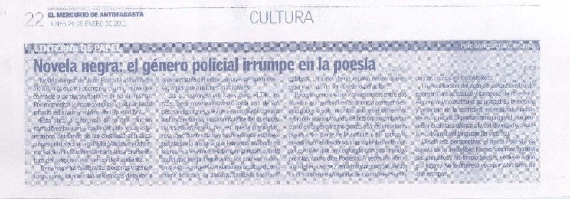 El género policial irrumpe en la poesía [artículo] Daniel Rojas Pachas.