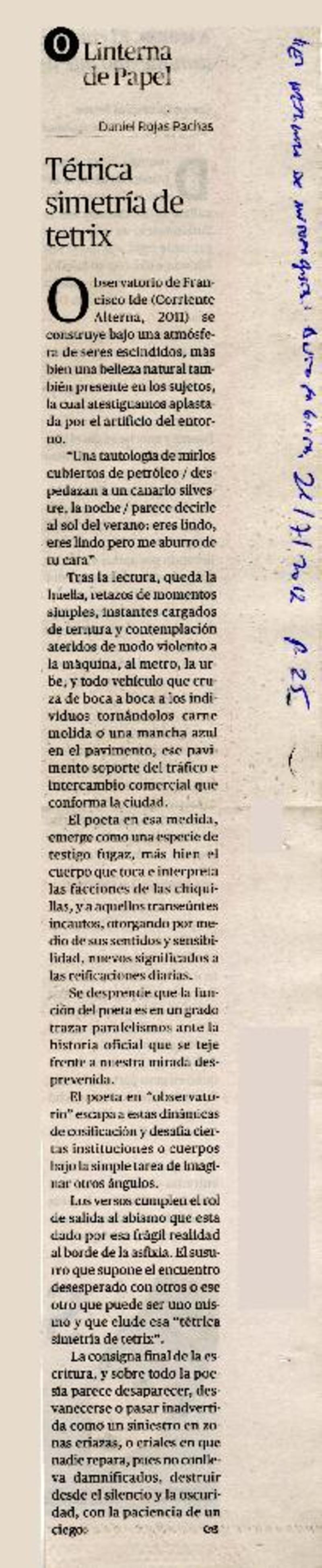 Tétrica simetría de tetrix [artículo] Daniel Rojas Pachas