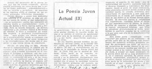 La poesía joven actual (IX) [artículo] Carlos M.