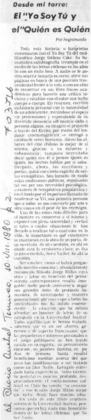 El "Yo soy tú" y el "Quién es quién" [artículo] Segismundo.