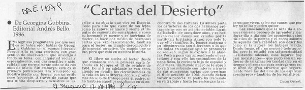 "Cartas del desierto" [artículo] Lucía Gevert.