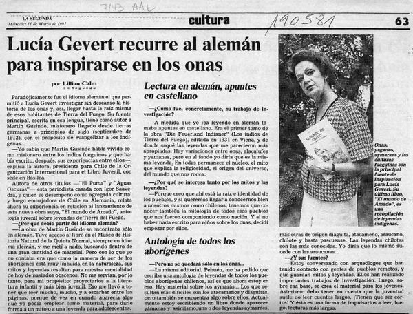 Lucía Gevert recurre al alemán para inspirarse en los onas [artículo] Lillian Calm.