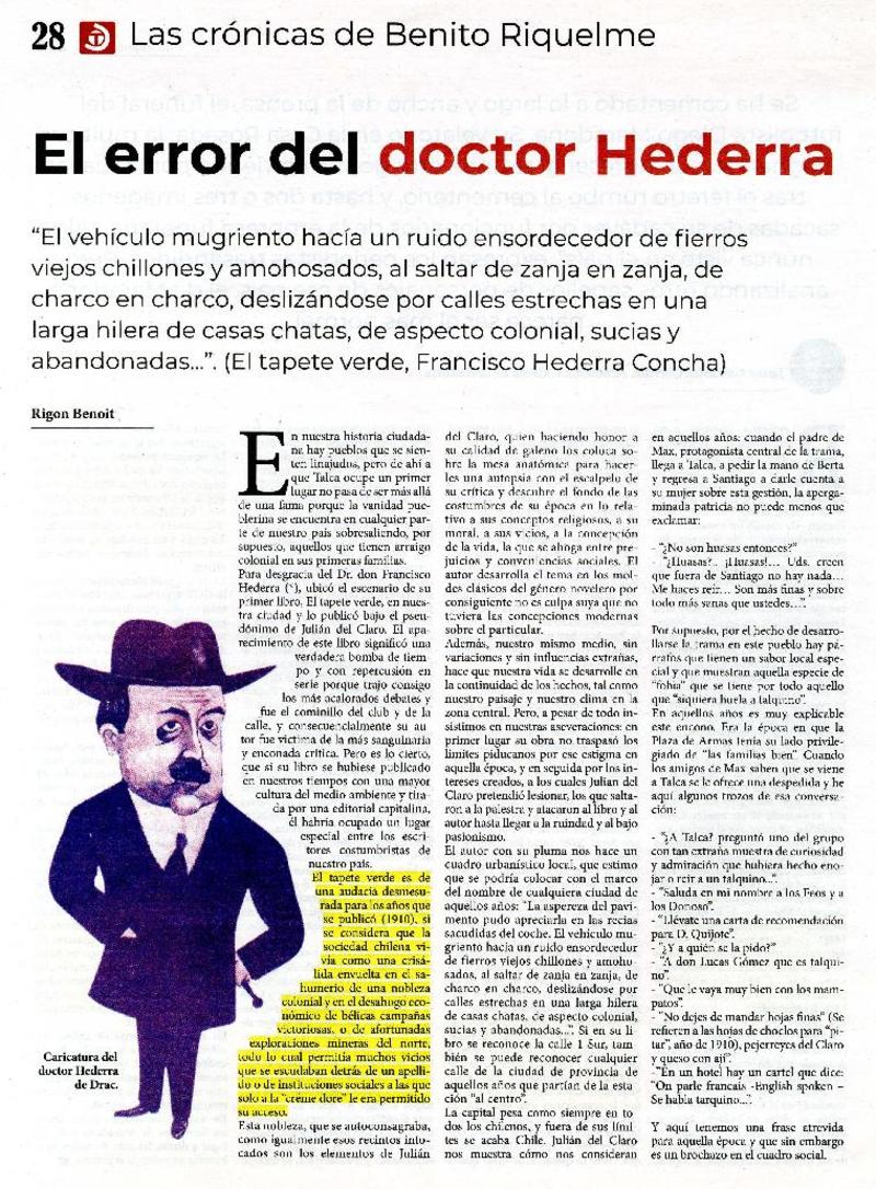 El error del doctor Hederra [artículo] Rigón Benoit.