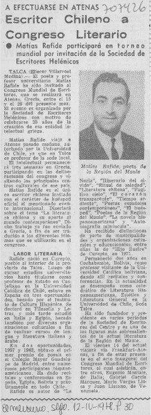 Escritor chileno a congreso literario [artículo] Eliecer Villarroel Medina.