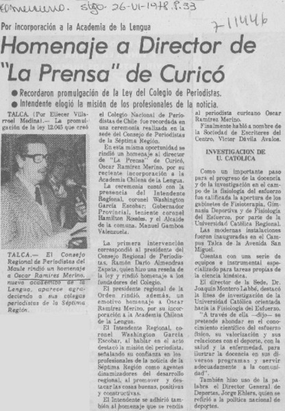 Distinción a académico de U. de Chile [artículo] Villarroel Medina.