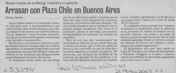 Arrasan con Plaza Chile en Buenos Aires [artículo] Marcela Andrés