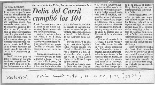 Delia del Carril cumplió los 104 [artículo] Jorge Escalante.