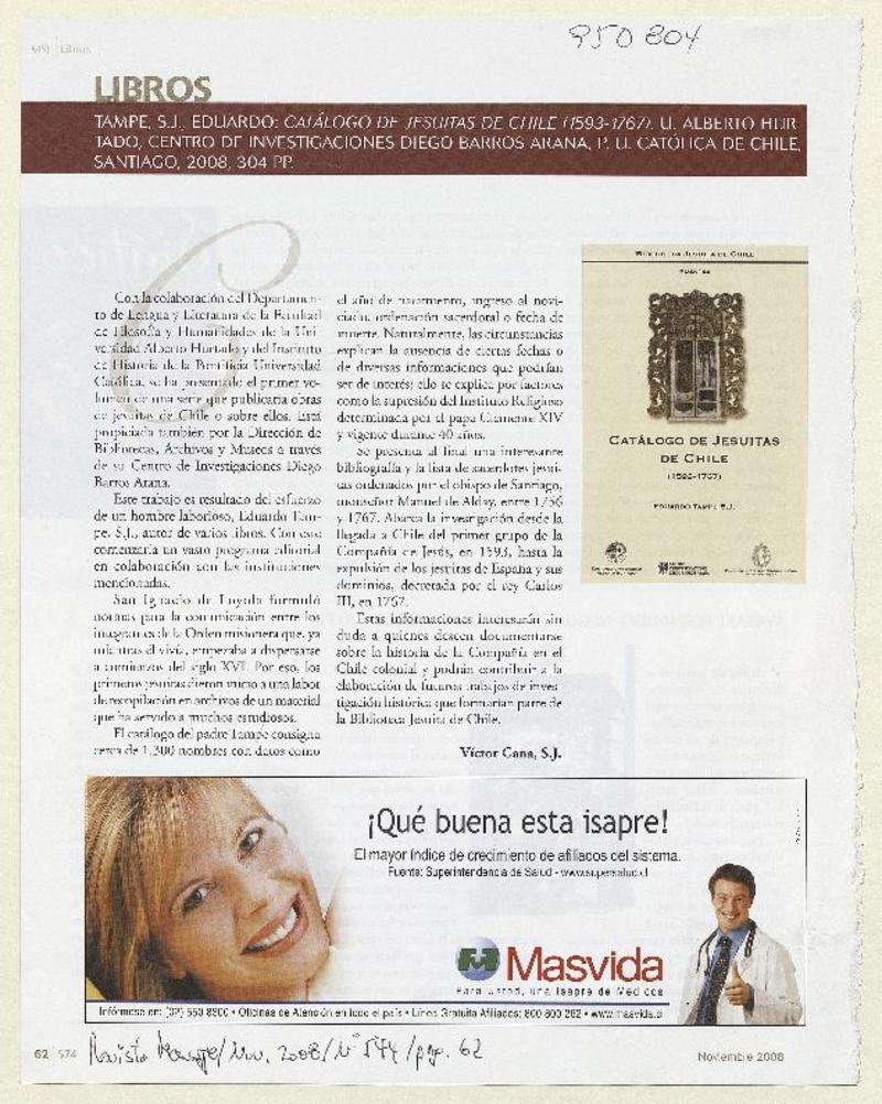 Catálogo de jesuitas en Chile [artículo] Víctor Gana, S. J.