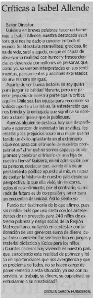 Críticas a Isabel Allende [artículo] Cecilia García-Huidobro B.