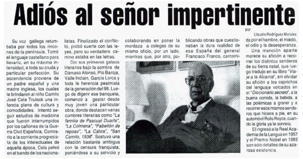 Adiós al señor impertinente [artículo] Claudio Rodríguez Morales.