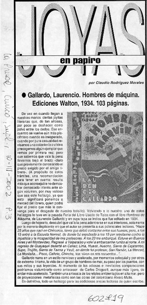 Autores chilenos - Gallardo, Laurencio - Hombres de máquina
