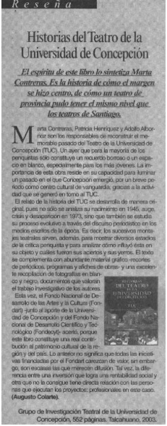 Autoras chilenas - Contreras B., Marta - Historia del Teatro de la Universidad de Concepción