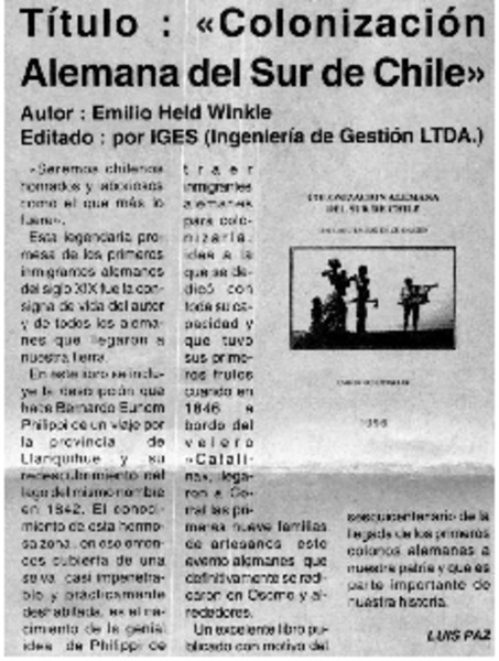 "Colonización Alemana del Sur de Chile" [artículo] Luis T. Paz y Miño.
