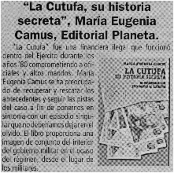 Autoras chilenas - Cutufa, su historia secreta - Camus, Maria Eugenia