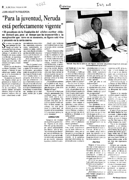 "Para la juventud, Neruda está perfectamente vigente": [entrevista] [artículo] Eleazar Garviso.