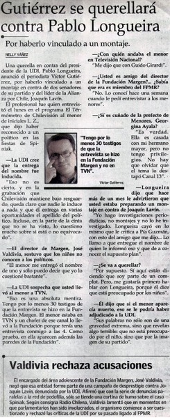 Gutiérrez se querellará contra Pablo Longueira : [entrevistas ] [artículo] Nelly Yáñez.