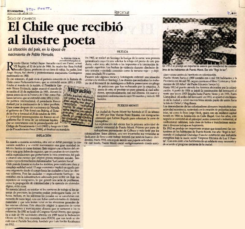 El Chile que recibió al ilustre poeta [artículo] Paulina Ossa M.