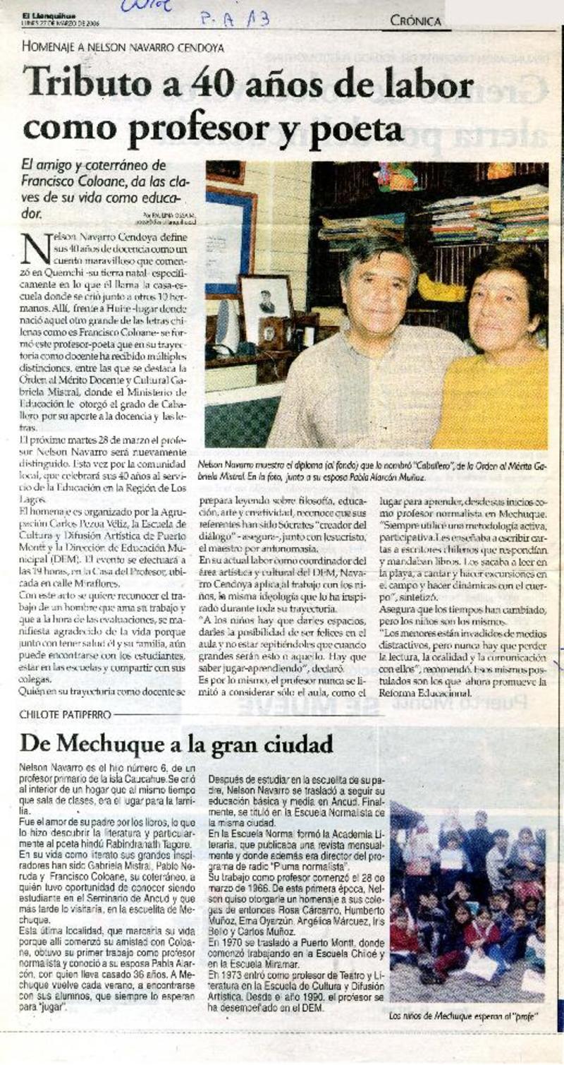 Tributo a 40 años de labor como profesor y poeta [artículo]Paulina Ossa M.