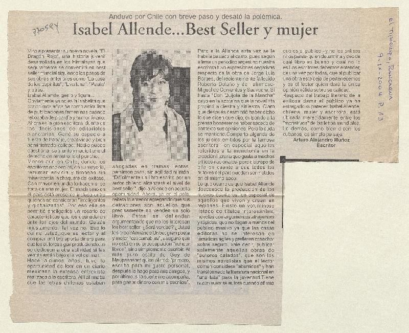 Isabel Allende... Best Seller y mujer [artículo] Arturo Alejandro Muñoz.