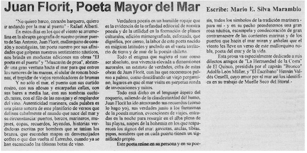 Juan Florit, poeta mayor del mar [artículo] Mario E. Silva Marambio.