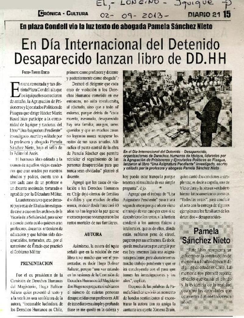 En día internacional del detenido desaparecido lanzan libro de DD.HH [artículo] Freddy Torres Oviedo.