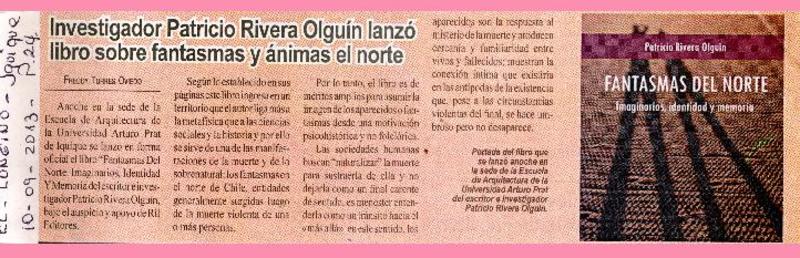 Investigador Patricio Rivera Olguín lanzó libro sobre fantasmas y ánimas el norte [artículo] Freddy Torres Oviedo.