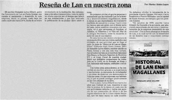 Reseña de Lan en nuestra zona [artículo] Marino Muñoz Lagos.