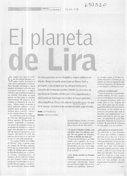 El planeta de Lira [artículo] Juan Pablo Meneses