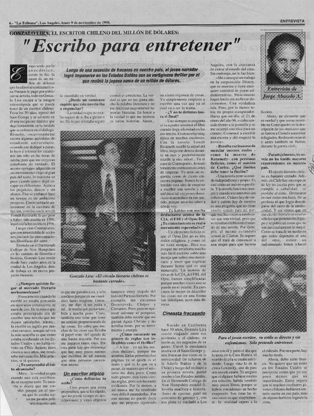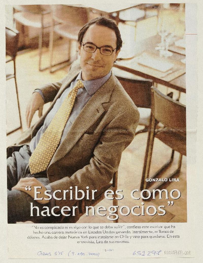 Gonzalo Lira: "Escribir no es ningún misterio" [entrevistas] [artículo] : Andrés Gómez Bravo.