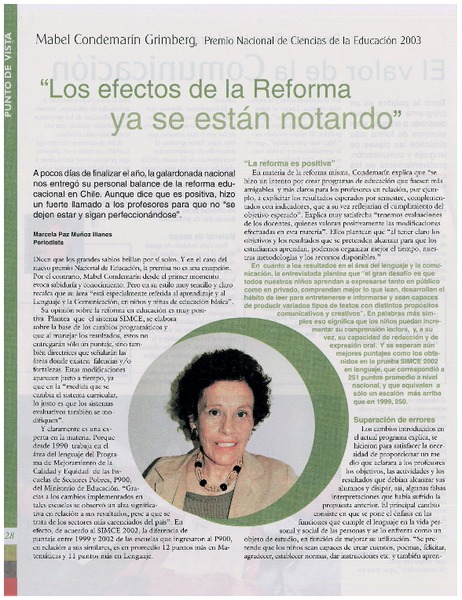 ¿Errores en la reforma educacional? [entrevista] [artículo] Marcela Paz Muñoz Illanes.