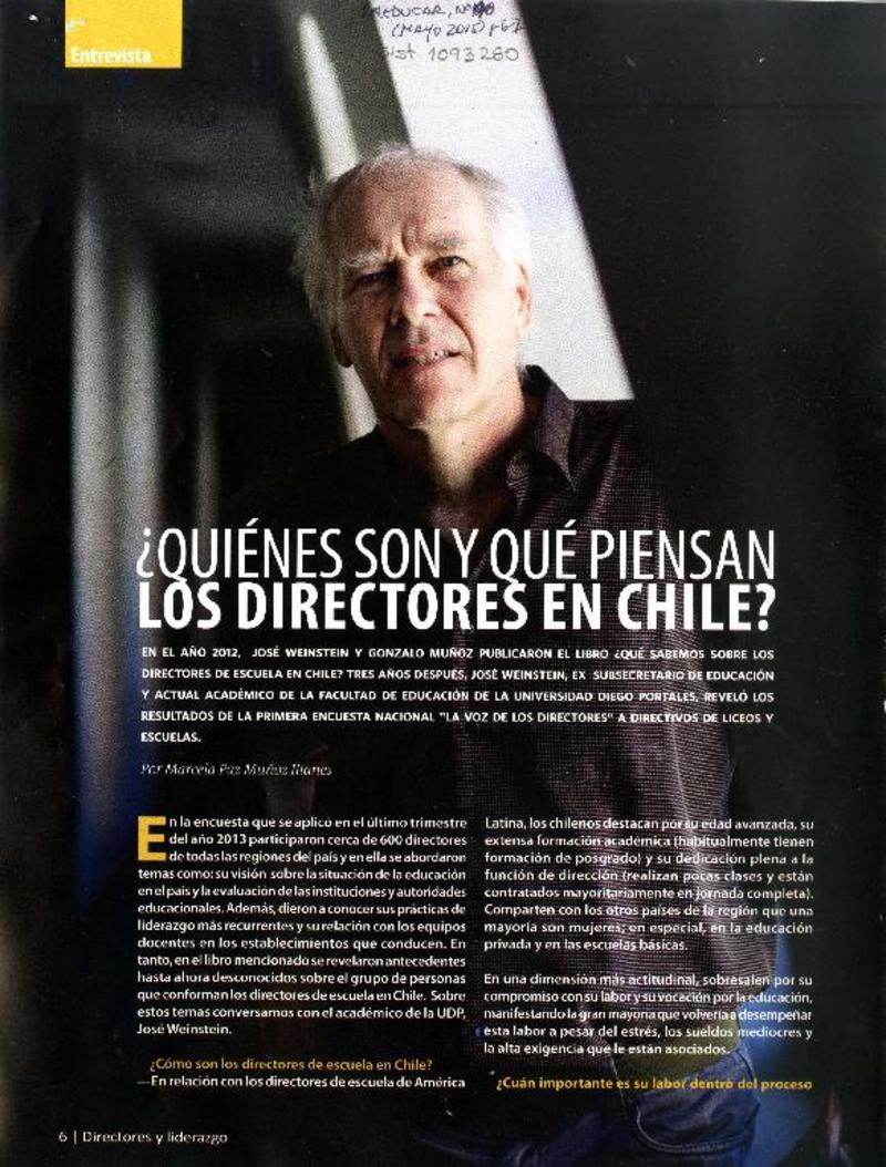 ¿Quiénes son y qué piensan los directores en Chile? [entrevista] [artículo] Marcela Paz Muñoz Illanes.