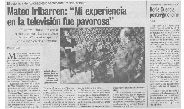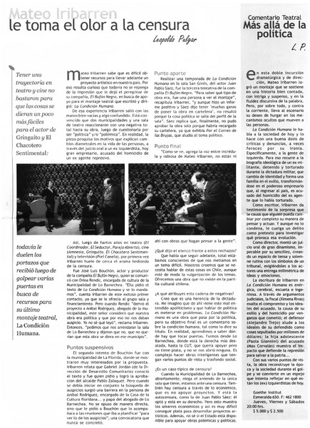 Mateo Iribarren. Le toma el olor a la censura [entrevista] [artículo] : Leopoldo Pulgar.