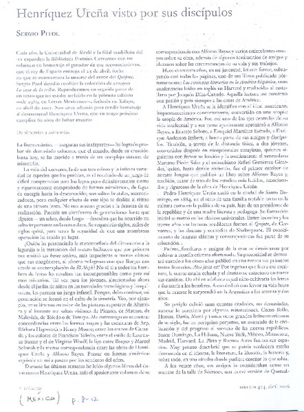 Henríquez Ureña visto por sus discípulos [artículo] Sergio Pitol.