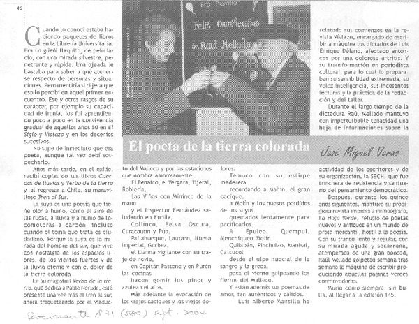El Poeta de la tierra colorada [artículo]José Miguel Varas.